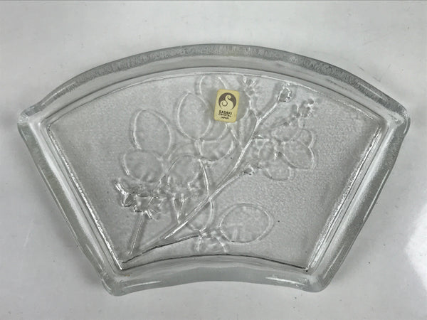 Japanese Sasaki Crystal Glass Sashimi Plate Kozara Vtg Fan Shape Plant Clear Y91