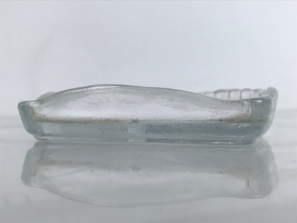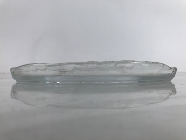 Japanese Sasaki Crystal Glass Sashimi Plate Kozara Vtg Fan Shape Plant Clear Y92