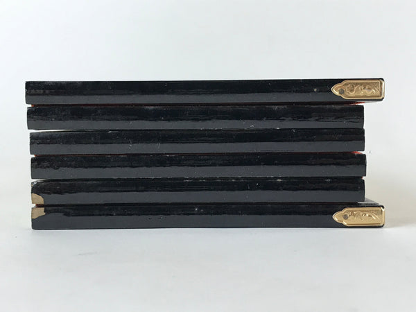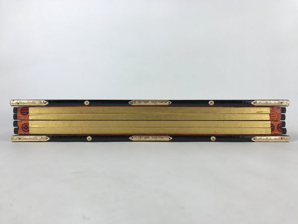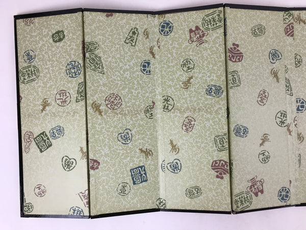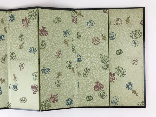 The back of the panel is made of Japanese washi paper and is beige with multicolored kanji stamp designs. The whole panel has a lacquered black wooden edge embellished with gold color metal parts. This is a delicate and elegant product.