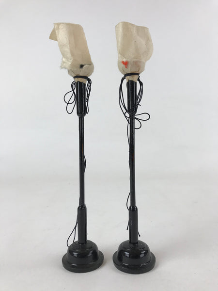 Japanese Hina Doll Furniture Lantern Vtg Bonbori Wood Paper Black 2pcs ID543