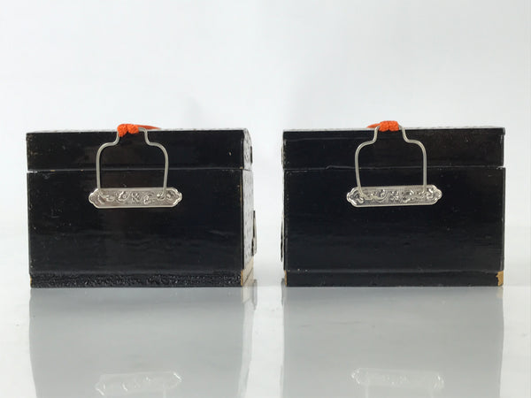 Japanese Lacquer Wood Hina Doll Chest Hasamibako Girls Day Makie Gold 2pc ID617