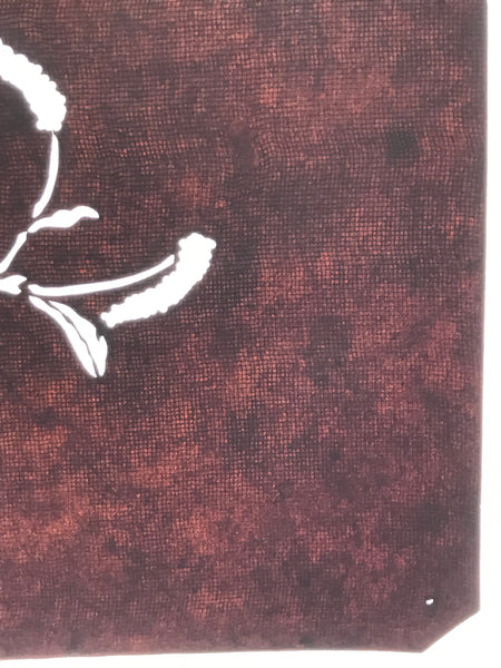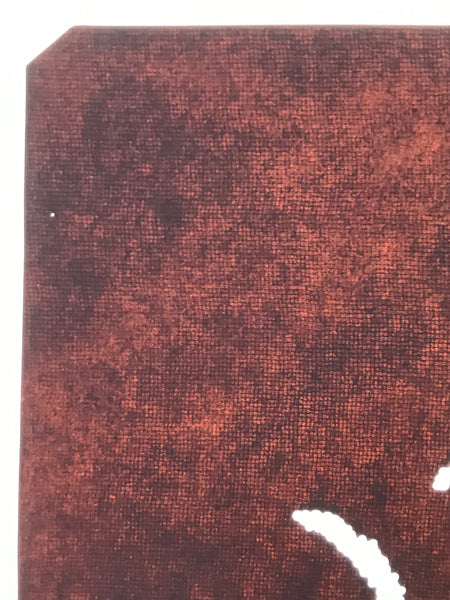 This antique Katagami was designed during the mid or late Edo period (1860) to early Meiji (1900) in Central Japan. It is made of two or more layers of handmade mulberry washi paper laminated together and waterproofed with persimmon tannin. Katagami printing uses a technique called resist dye where a paste is applied to the fabric with the katagami before dipping in ink. The open space on the katagami will be a negative space in the printed design.