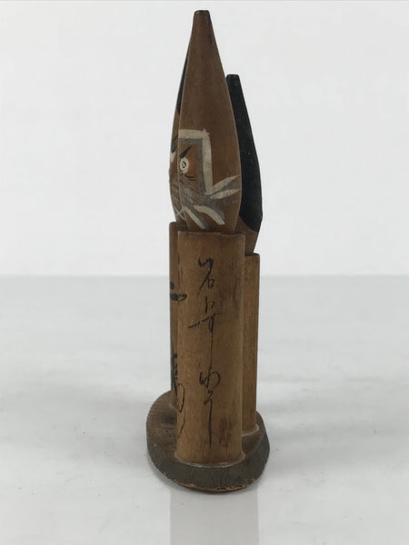 Japanese Wooden Kokeshi Doll Vtg Wobbly Head Figurine Three Brush Fude KF808
