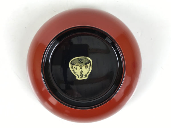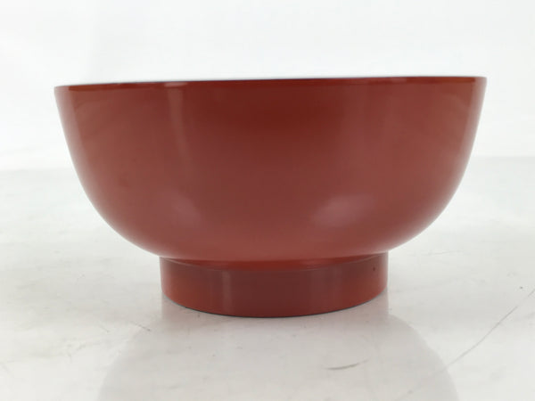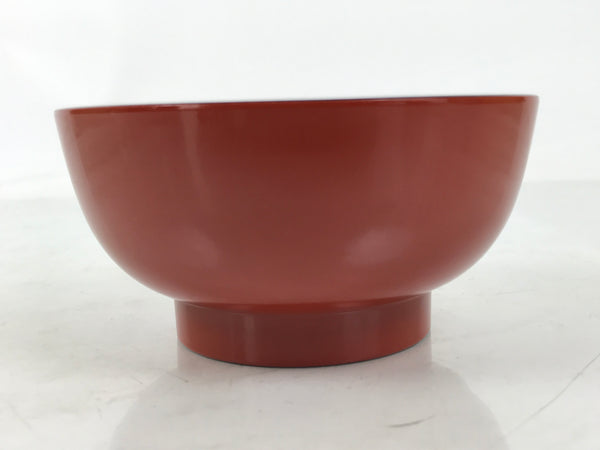 This is a vintage Japanese Wajima wooden lacquered rice bowl. It is mostly red with a black rim and bottom, made with natural lacquer. It is a beautifully handcrafted addition to any traditional Japanese dinnerware set.