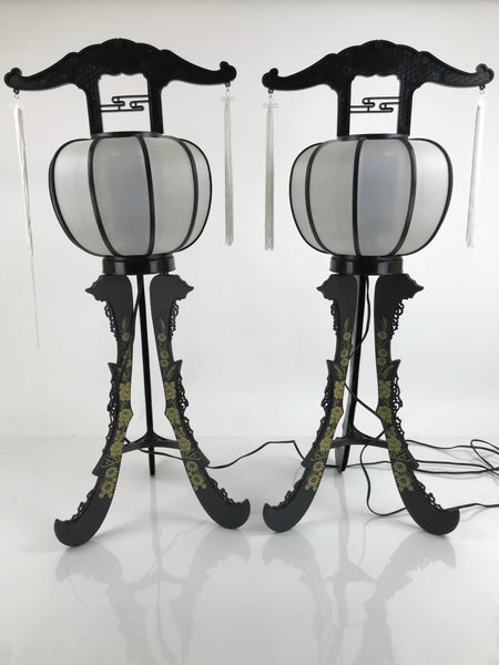 Japanese Electric Lantern Pair Vtg 3 Legs Standing Chochin Obon Festival LT83