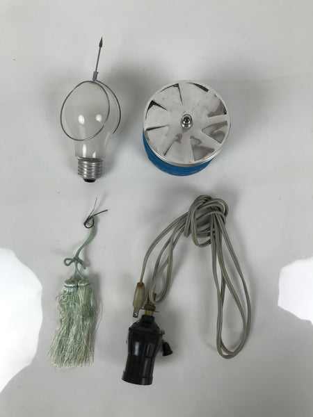 • Good condition considering age. Some damage in the paper (white lantern). Light bulb works but the switch is broken. Damage on the box. Wear and tear due to age. Please see the photos carefully.
