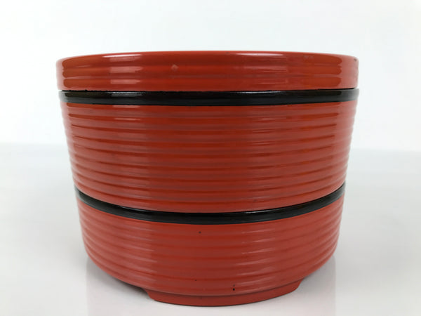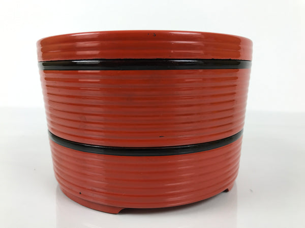 Japanese Resin Lidded Bento Lunch Box Vtg 2 Tier Jubako Round Red Black L546