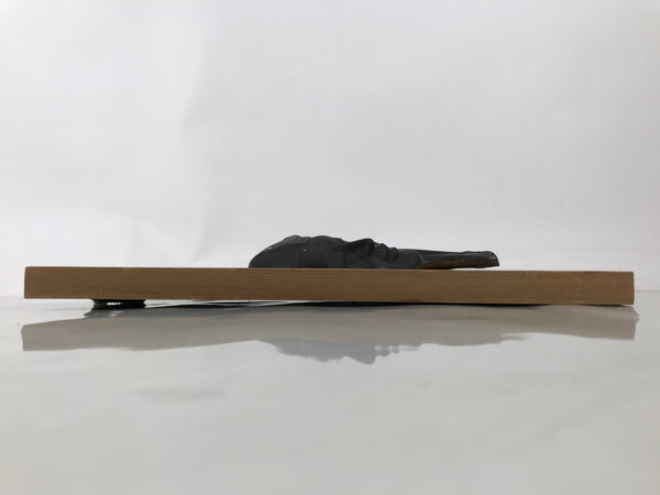 Japanese Black Mask Wall Hanging Art Vtg Portrait Wood Plaque Brown FL416