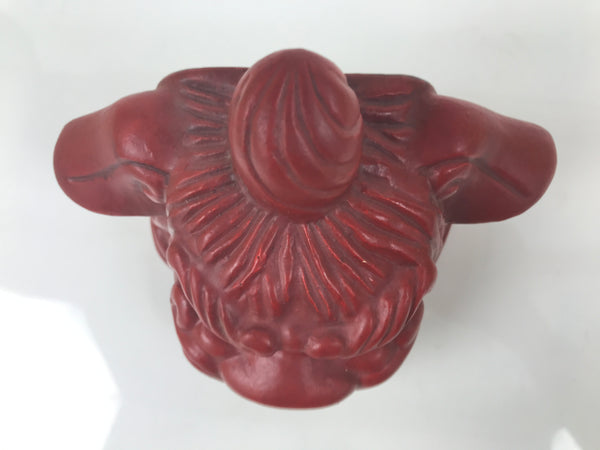 Japanese Clay Shishi Dancing Lion Dog Mask Small Container Vtg Komainu Red OM92