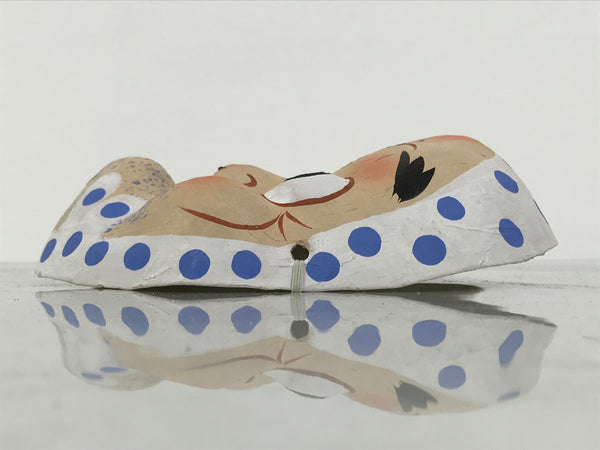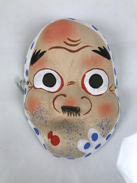This is a vintage Japanese paper mache noh mask (noh-men). This character is the face of a man named Hyottoko. This character is a man with a twisted, puckered mouth off to one side and a scarf tied around his head. He is said to be a comical character and often paired with Okame which is the female equivalent. In many performances, Hyottoko plays the role of a clown. It can be used for all kinds of home and office decor.