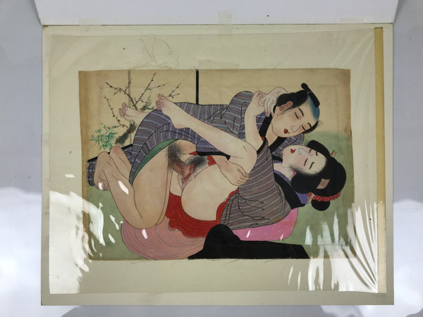 Japanese Shunga Erotic Art Vtg Hand-painted Toyokuni III Hiroshige Utagawa FL497