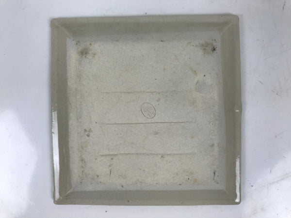 This is a vintage Japanese ceramic pottery plate. This small-sized square plate, also called sara or kozara, has a beige border with a bright orange center as well as an unglazed leaf design and a decorative grooved edge. This item is perfect for small side dishes, condiments, dipping sauces, or simply to hold small jewelry or keys.