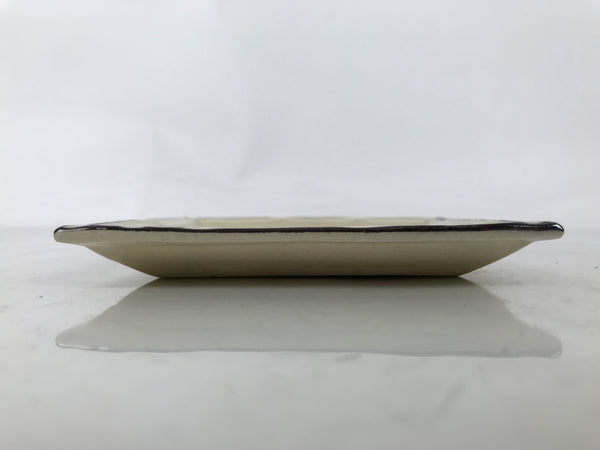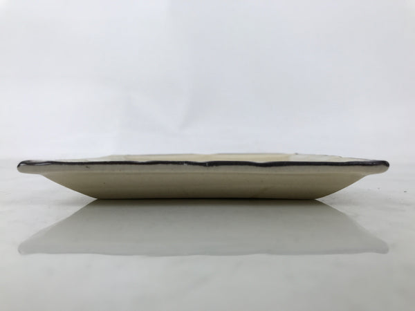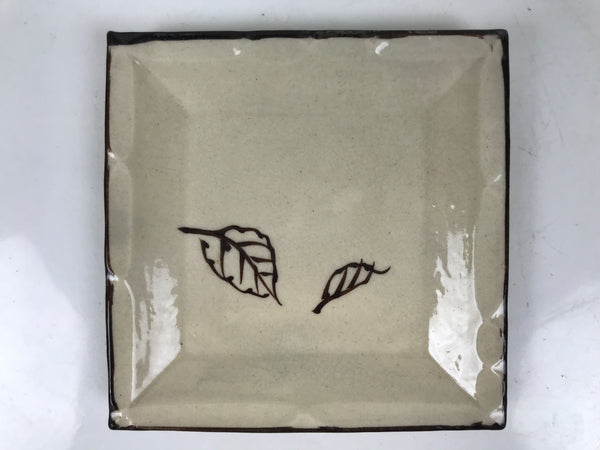 Japanese Ceramic Small Plate Kozara Vtg Sara Square Pottery Beige Leaves Y442