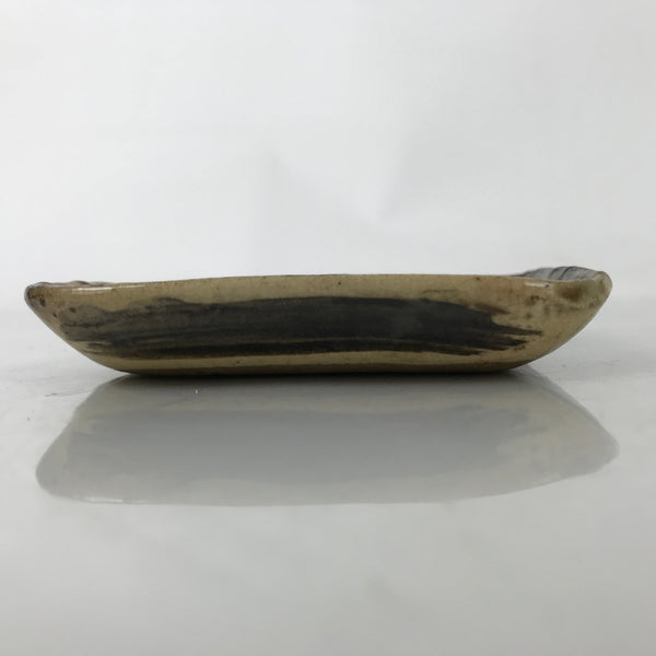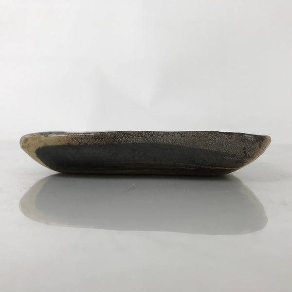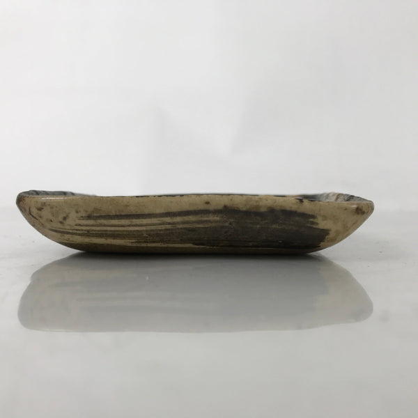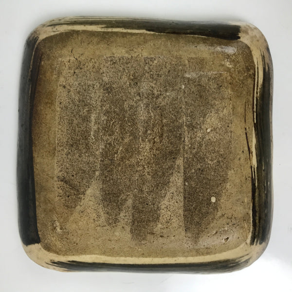 This is a vintage Japanese ceramic pottery plate. This square small-sized plate, also called sara or kozara, has a brown base color with black brush strokes. The glaze has a rough texture throughout. This item is perfect for small side dishes, condiments, dipping sauces, or simply to hold small jewelry or keys.