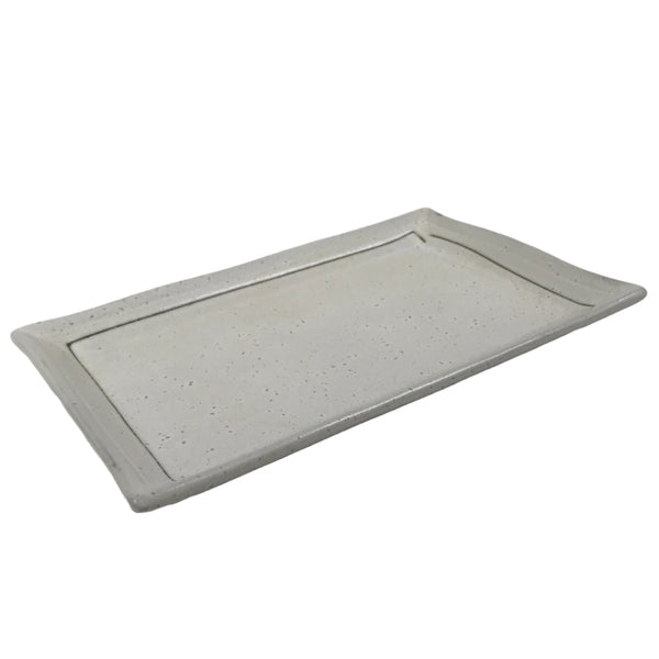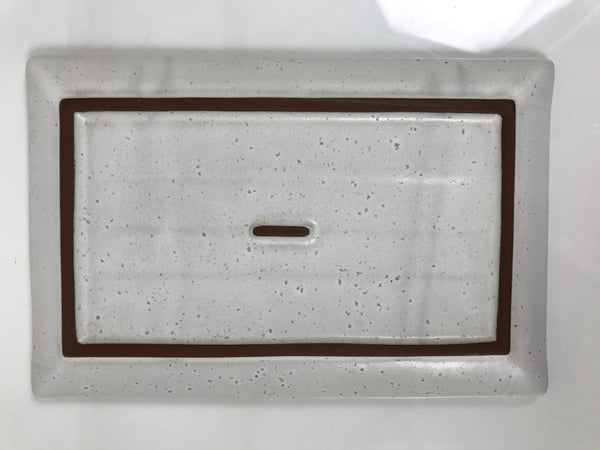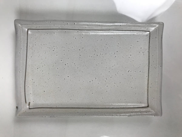 This is a vintage Japanese ceramic sushi plate/platter. It is mostly gray with darker gray specks and a simple brown border line on the inside edge. It can fit 4-5 pieces of sushi comfortably. It is also an excellent size for serving grilled fish or for tempura. Paired with a soy sauce dish (seiji), a small plate (kozara), and a pair of chopsticks, this plate is a perfect addition to any Japanese dinnerware set.
