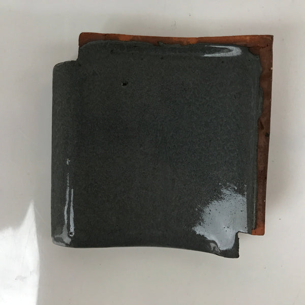 This is a vintage Japanese clay roof tile plate. This small square plate, also called mamezara, is an actual clay terracotta roofing tile with a gray glazed top surface. It is a unique and rustic addition to any dinnerware or entertaining set.