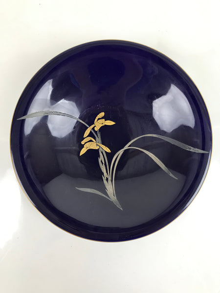 Japanese Porcelain Serving Dish Plate Vtg Koransha Sara Blue Gold Iris Ayame Y12