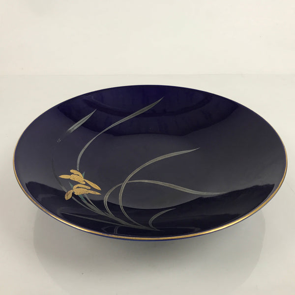 Japanese Porcelain Serving Dish Plate Vtg Koransha Sara Blue Gold Iris Ayame Y14