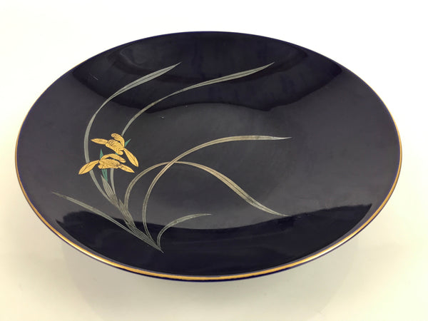 Japanese Porcelain Serving Dish Plate Vtg Koransha Sara Blue Gold Iris Ayame Y17