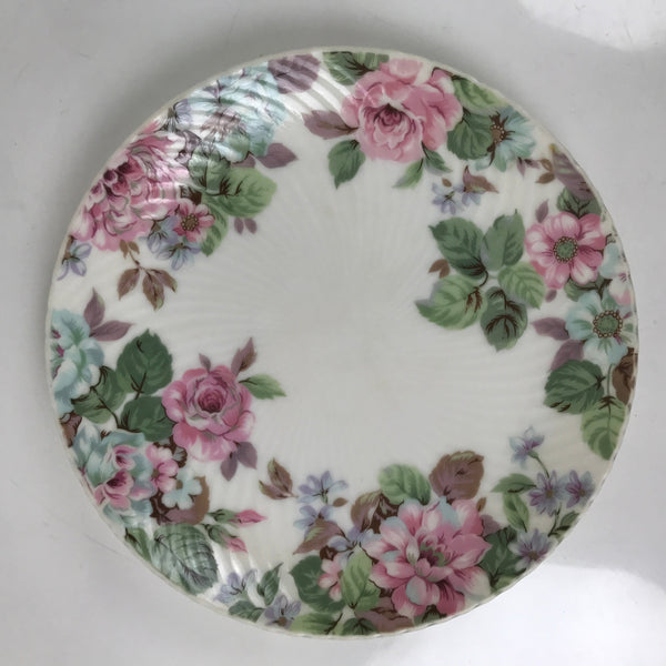 Japanese Porcelain Medium Serving Plate Chuzara Vtg Round Pink Floral Leaf Y245