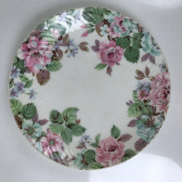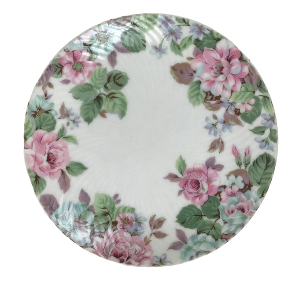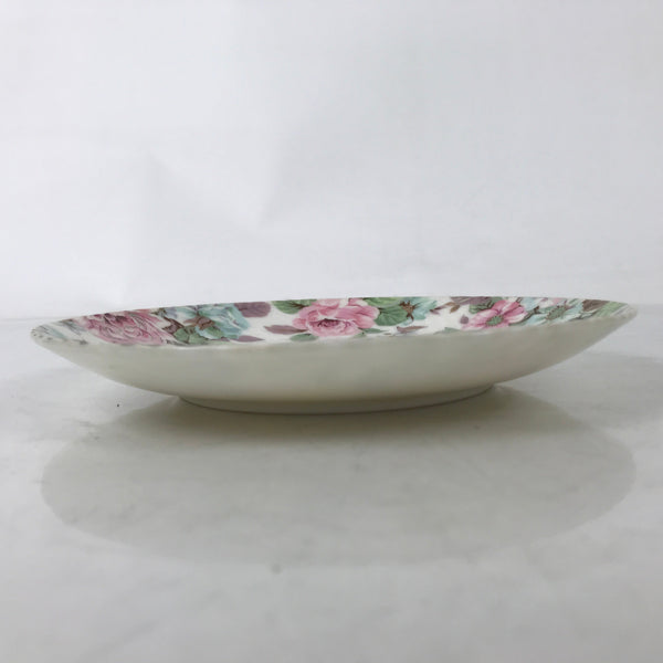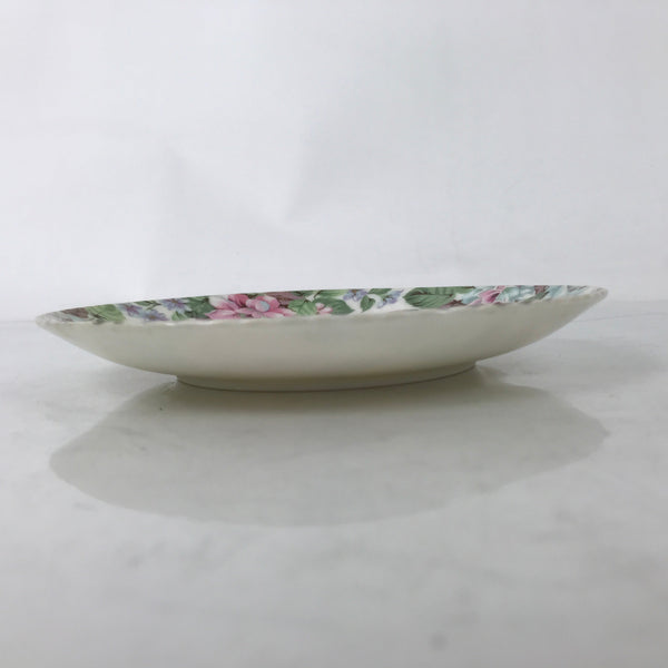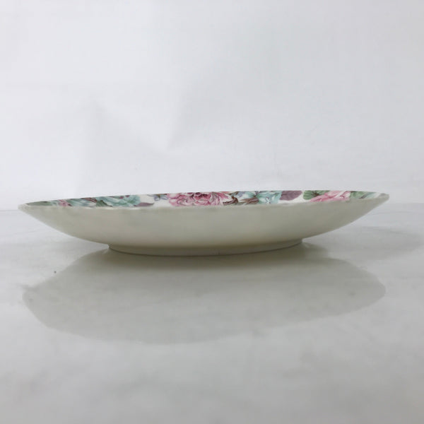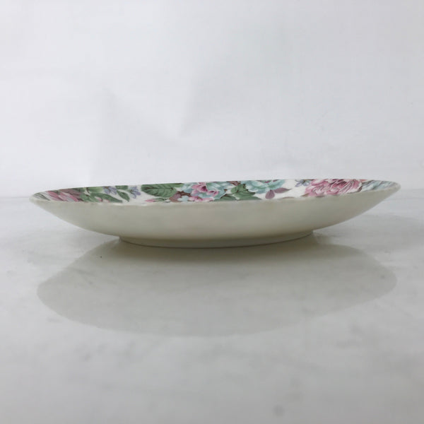 Japanese Porcelain Medium Serving Plate Chuzara Round Pink Floral Leaf Y242