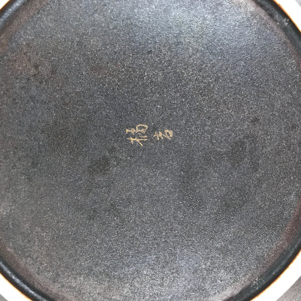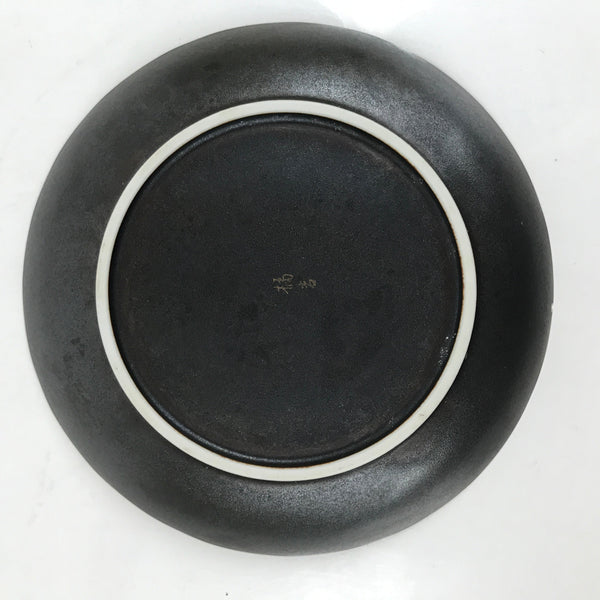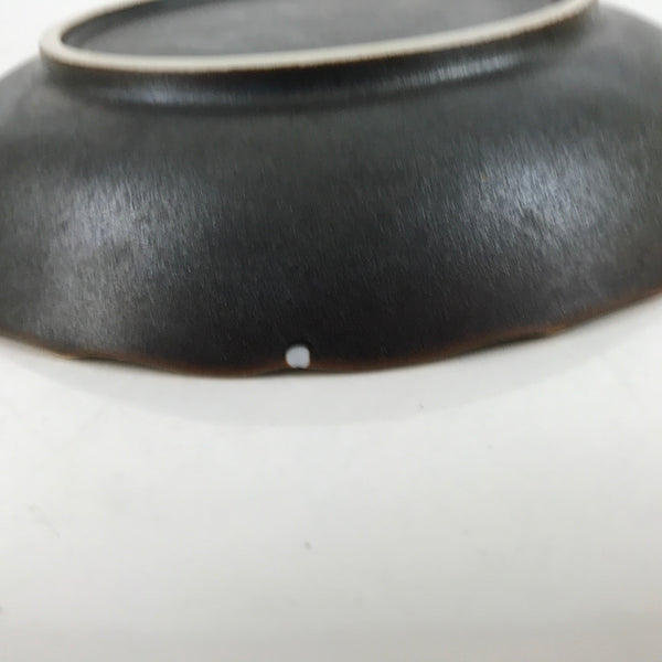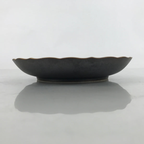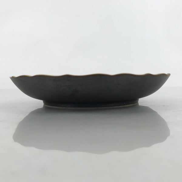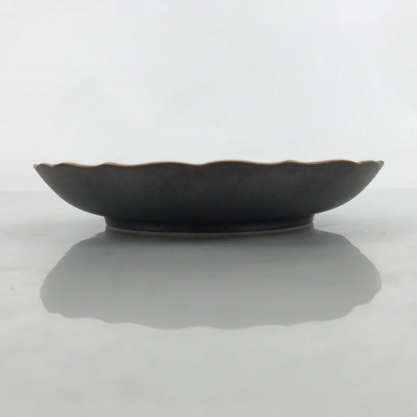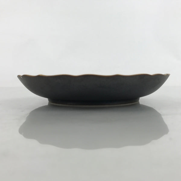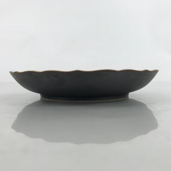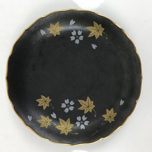 This is a vintage Japanese ceramic plate. This round, small-sized plate, also called sara or kozara, is a very dark brown with gold maple leaves (momiji) and silver cherry blossoms (sakura).