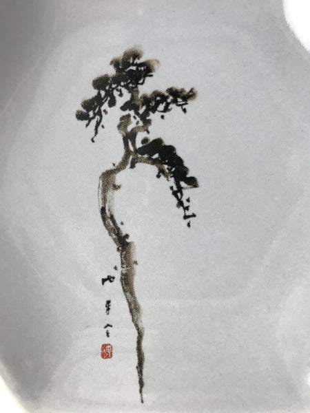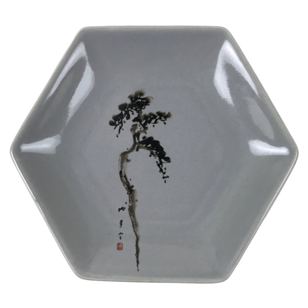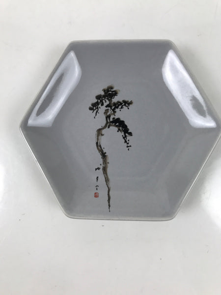 Japanese Porcelain Small Serving Plate Meimeizara Hexagon Pine Tree Gray Y218
