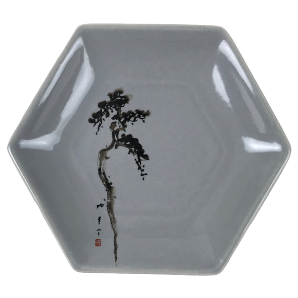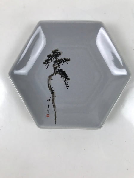 Japanese Porcelain Small Serving Plate Meimeizara Hexagon Pine Tree Gray Y219
