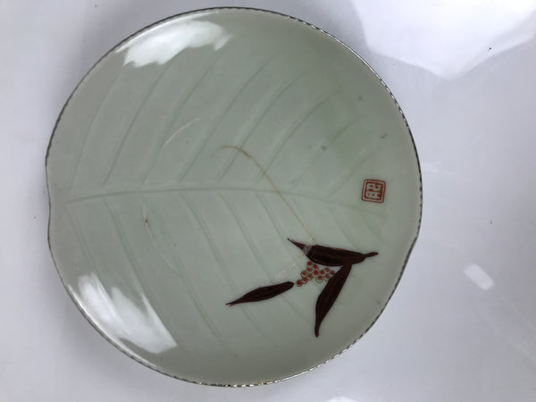 Japanese Porcelain Plate Sara Vtg Kozara Nanten Sacred Bamboo Leaf Celadon Y460