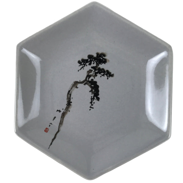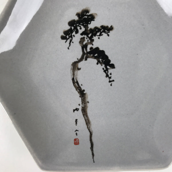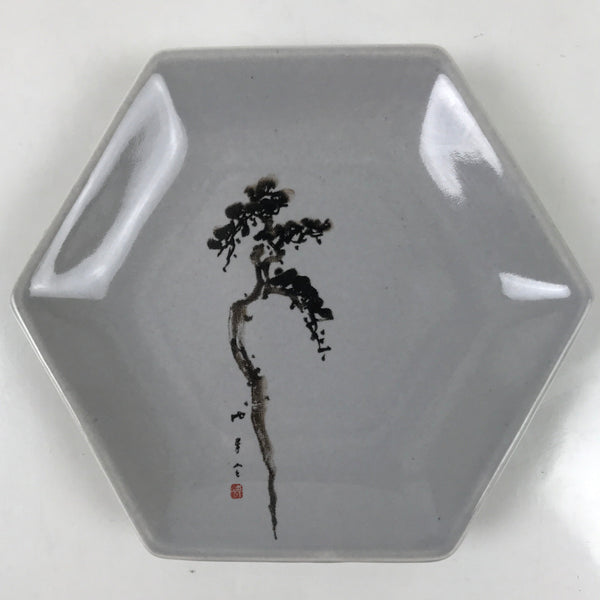 Japanese Porcelain Small Serving Plate Meimeizara Hexagon Pine Tree Gray Y222