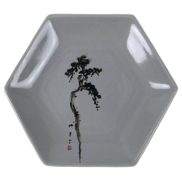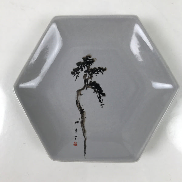 Japanese Porcelain Small Serving Plate Meimeizara Hexagon Pine Tree Gray Y223