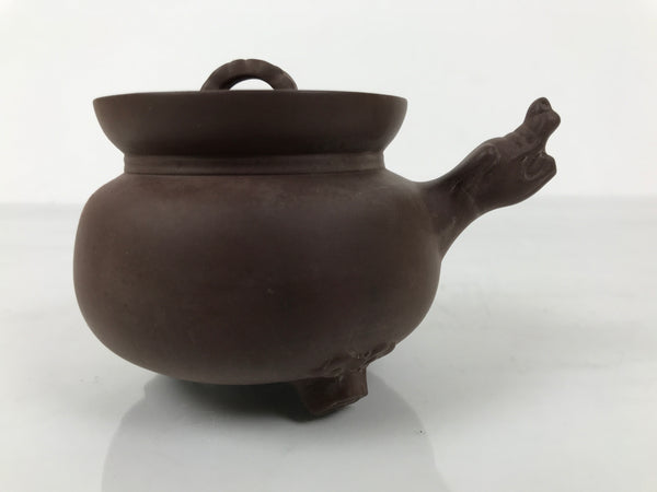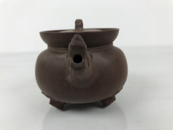 This is a vintage Chinese Yixing lidded teapot perfect for having Chinese tea. This small teapot has three legs, and the spout has a shishi design.