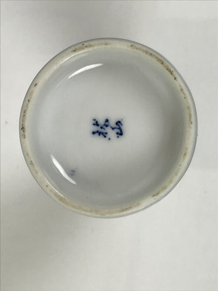 This is a vintage Chinese porcelain sake bottle or Tokkuri. This small bottle features children playing in Tang-style clothing (also called karako in Japanese). The bottle is mostly white with blue designs and borders. It is approximately an ichi-go size sake bottle or a little larger. It can also be used for water, other drinks, as a vase, or as a decorative item. There is a blue signature on the bottom.