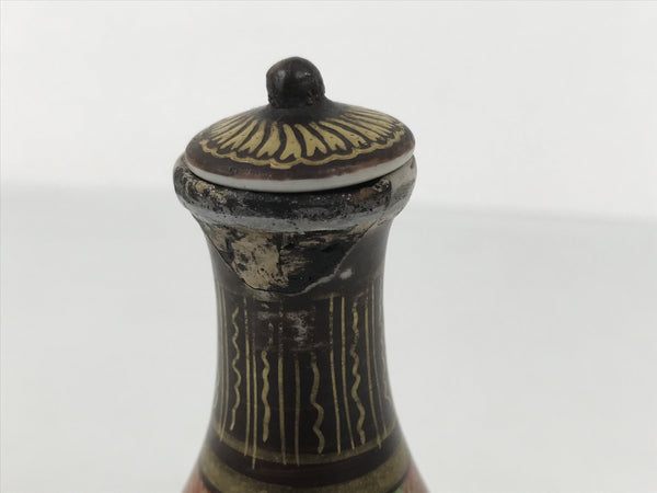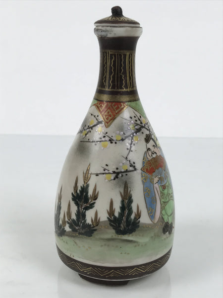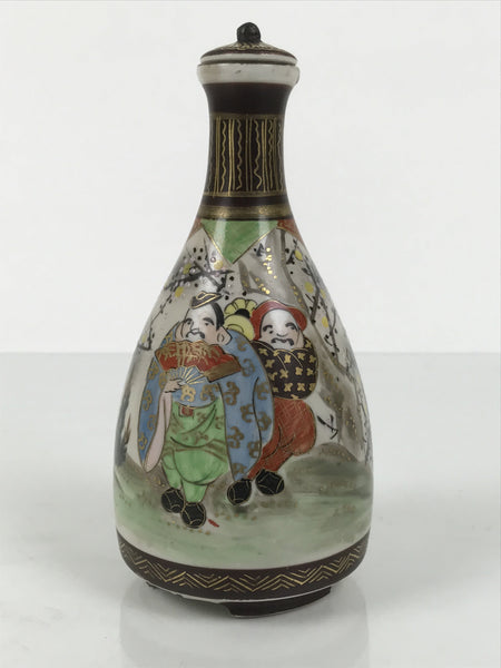 Antique Japanese Kutani Porcelain Lidded Sake Bottle Tokkuri Ebisu Daikoku TS896