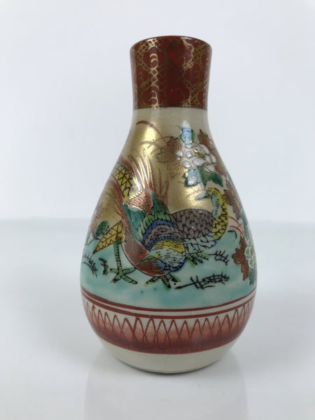 Japanese Kutani Porcelain Sake Bottle Tokkuri White Red Gold Pheasant Bird TS887