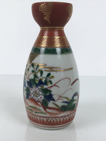 Japanese Kutani Porcelain Sake Bottle Tokkuri Vtg Peony Colorful Birds Red TS918