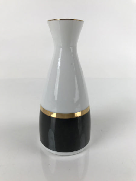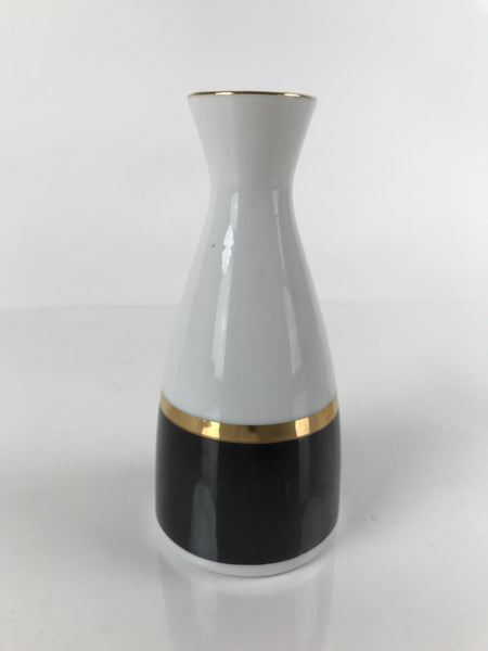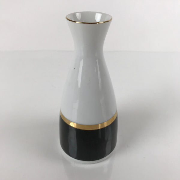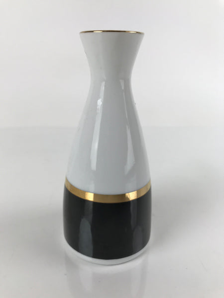Japanese Porcelain Sake Bottle Tokkuri Vtg Ichi-Go Simple Black Gold White TS639