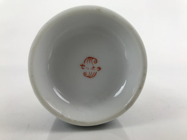 This is a vintage Japanese porcelain sake bottle or Tokkuri. This small bottle is classy and simple with a solid white top half, followed by thick bands of gold and black with a gold rim. It is approximately an ichigo size sake bottle or a little larger. It can be also used for water, other drinks, as a vase, or as a decorative item. There is a red signature stamp on the bottom that says "セイホウ" or "seihou".