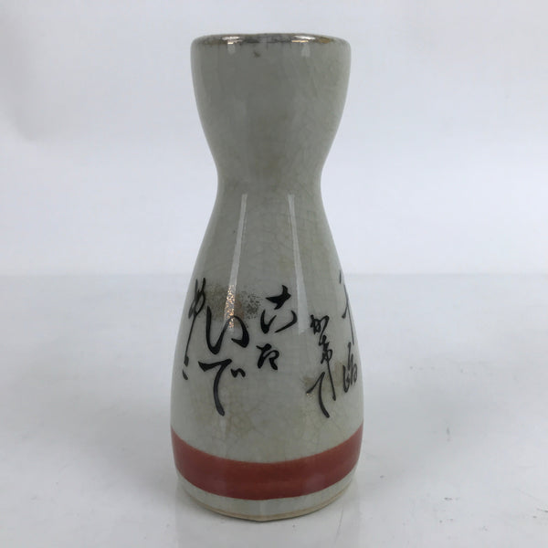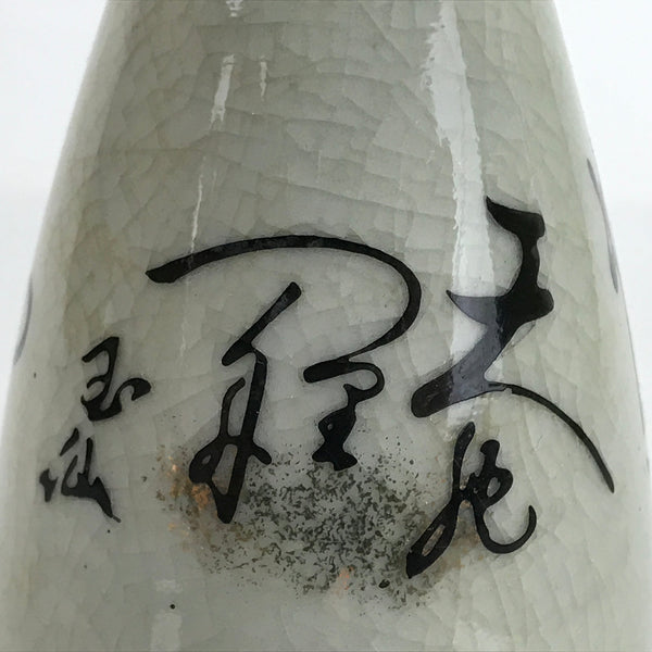 Japanese Ceramic Sake Bottle Tokkuri Vtg Calligraphy Crackle Glaze Gray TS723
