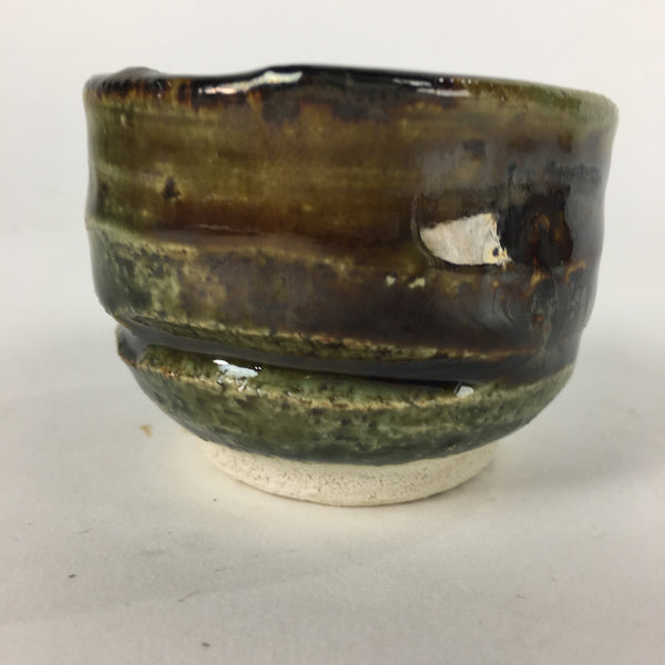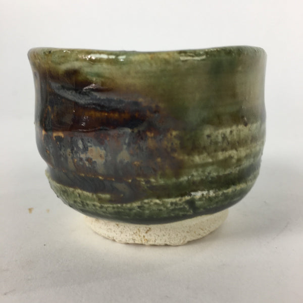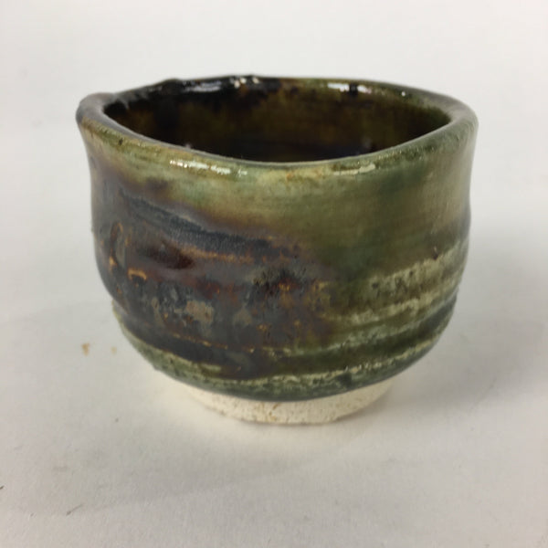 Japanese Ceramic Oribe Ware Sake Cup Vtg Guinomi Ochoko Green Glaze GU969