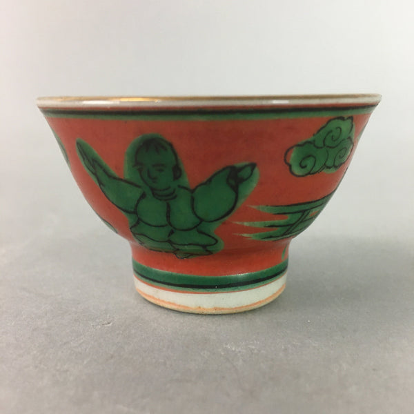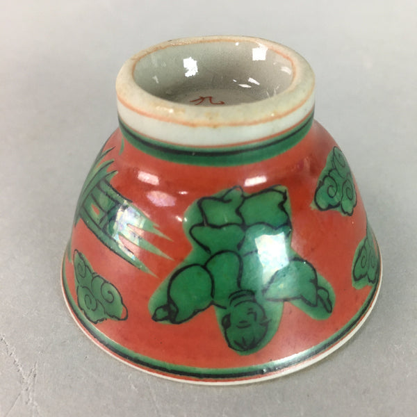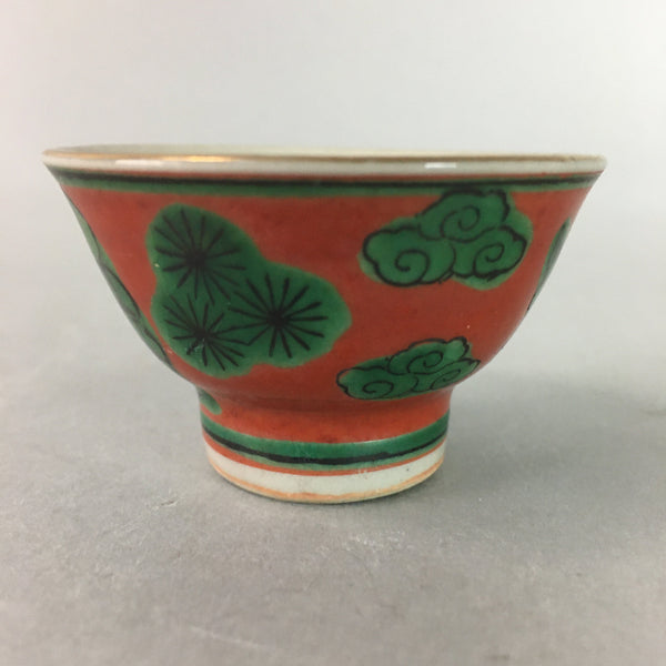 Japanese Ceramic Sake Cup Guinomi Sakazuki Kutani Vtg Pottery Red Green GU660
