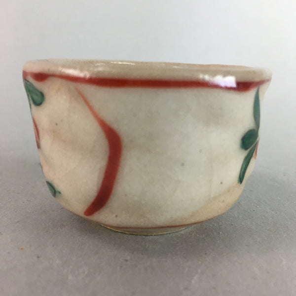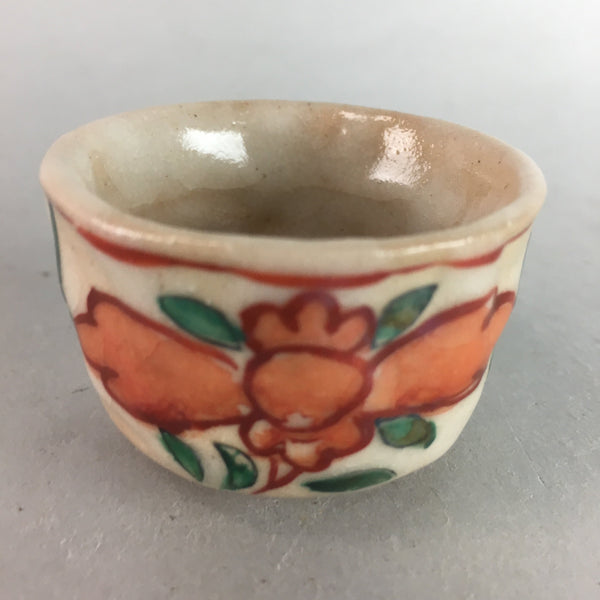 Japanese Ceramic Sake Cup Guinomi Sakazuki Vtg Floral Pottery Crackle GU555