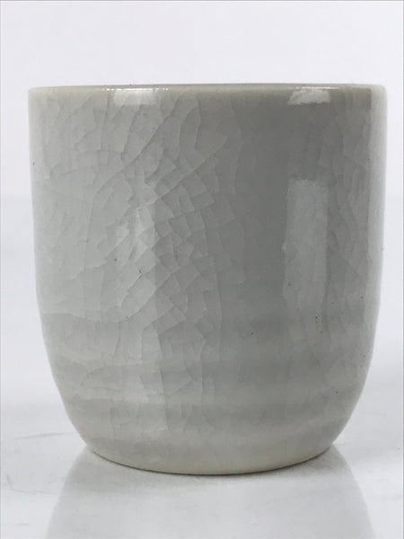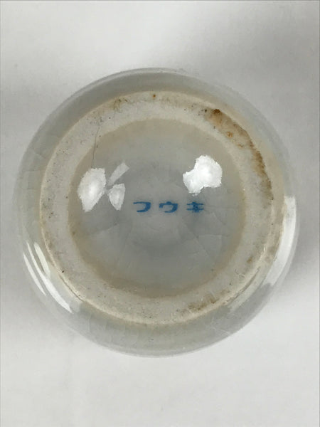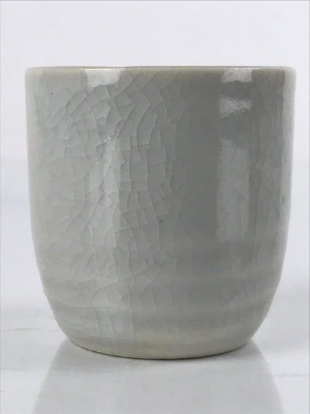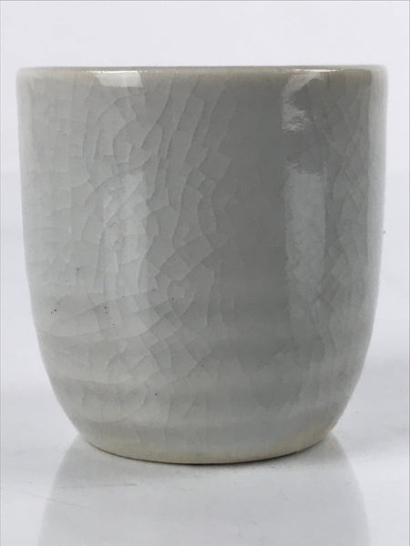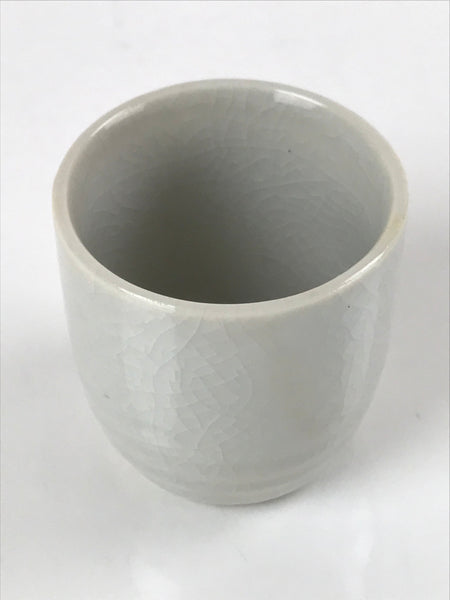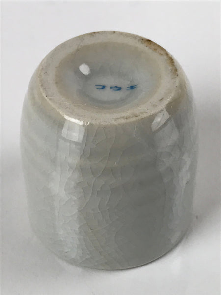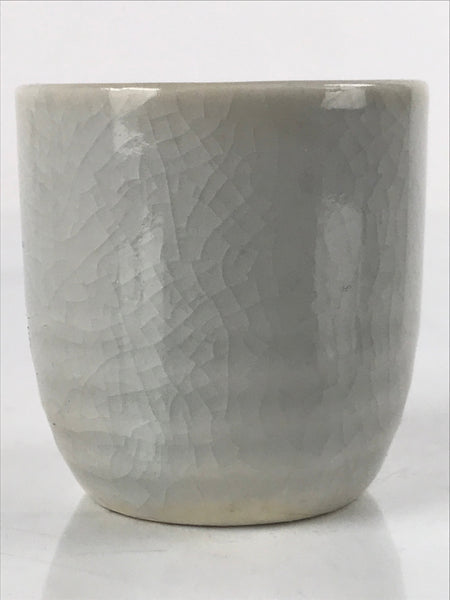 This is a vintage Japanese ceramic sake cup. This particular type of cup is called tsubomi or "bud type" due to its resemblance to a flower bud. In terms of size, it is also called ochoko. This cup is very simple with a light gray crackle glaze.