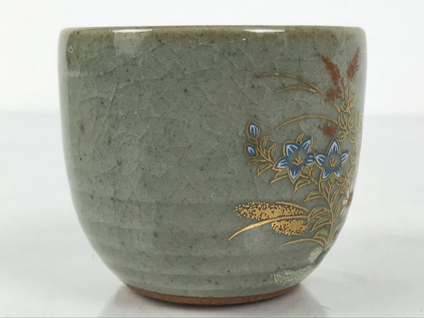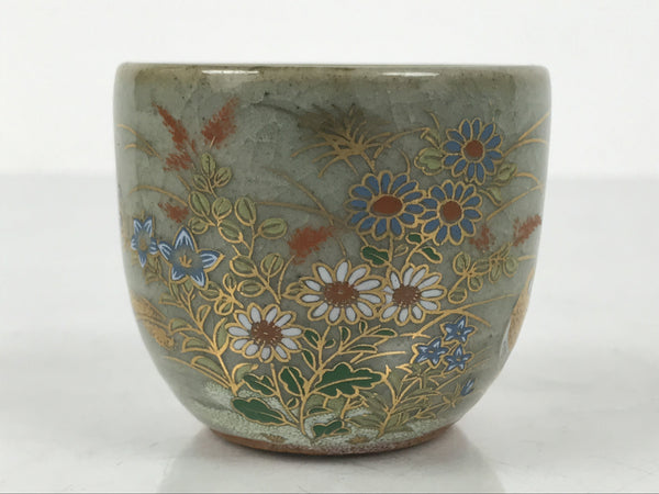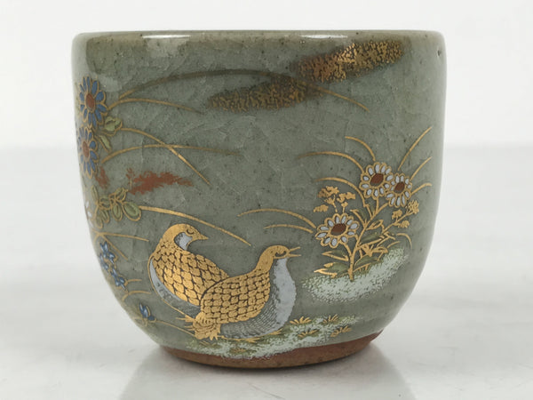 Japanese Kutani Imari Ceramic Sake Cup Vtg Tsubomi Ochoko Flowers Bird Gray G340