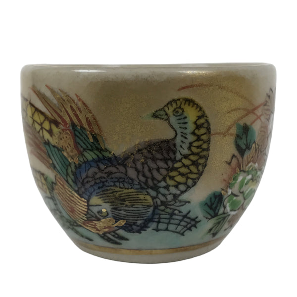 Japanese Kutani Imari Porcelain Sake Cup Vtg Tsubomi Ochoko Pheasant Birds G316