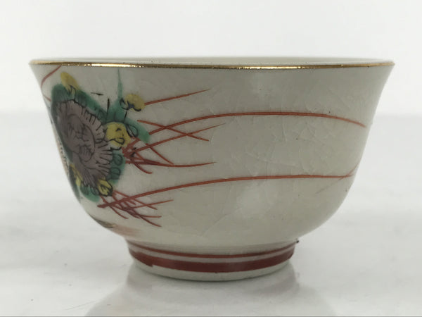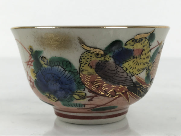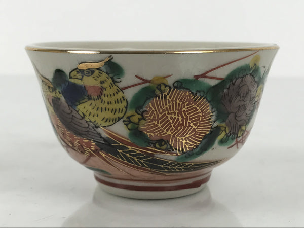 Japanese Kutani Imari Porcelain Sake Cup Vtg Wan Guinomi Birds Peony Flower G342