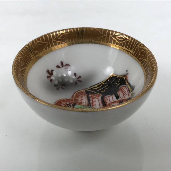 Japanese Kutani Imari Porcelain Sake Cup Vtg Tsubomi Ochoko Court Carriage G321