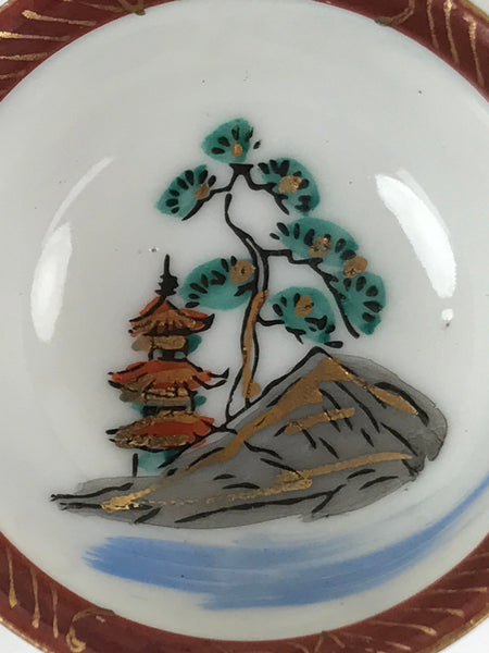 Japanese Kutani Ware Porcelain Sake Cup Vtg Tsubomi Ochoko Pagoda Pine Tree G233