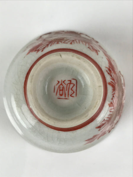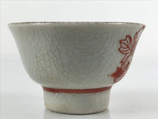 Japanese Porcelain Sake Cup Vtg Wan Ochoko Guinomi Peony Botan Red Gray G181