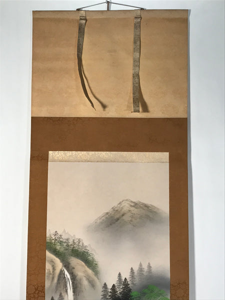 Japanese Boxed Hanging Scroll Vtg Kakejiku River Algae Waterfall Mountain KJ152